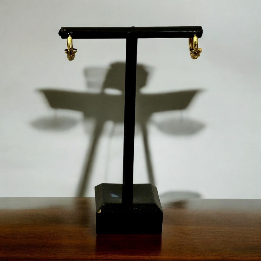 Get ready to shine with our Antlia Earrings! These gold hoops feature a stunning star-shaped Swarovski crystal, adding a touch of elegance and sparkle to any outfit. Elevate your look and make a statement with these beautiful earrings.