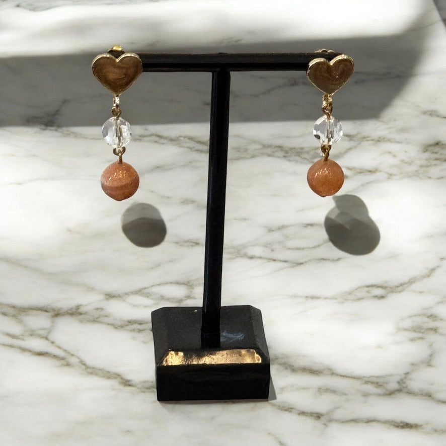 Add a touch of elegance to your wardrobe with our Latte Earrings. These shimmery brown heart shape studs will add a pop of color and sparkle to any outfit. Made with beautiful white Austrian crystals and ochre brown beads, these earrings are the perfect accessory for any occasion. Elevate your style today!